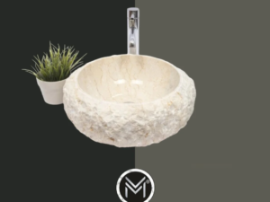 Bej Mermer Bombeli Lavabo | Modern ve Şık Doğal Taş Lavabo | Ücretsiz Kargo