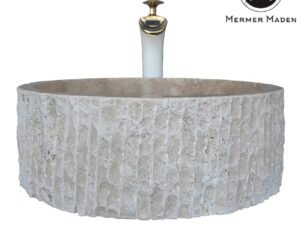 Traverten Yuvarlak Lavabo Dışı Dikey Patlatma