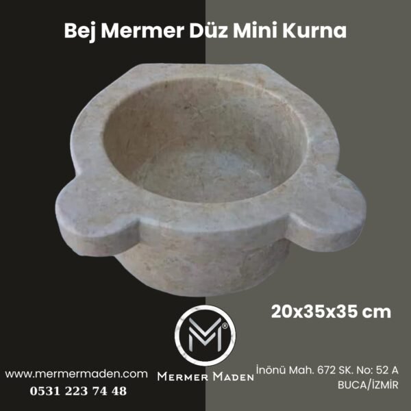 Bej Mermer Düz Mini Kurna | Doğal Taş Hamam Kurnası | Ücretsiz Kargo